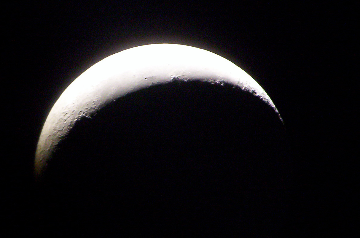 16 December 2006 PhotosHere are two photos I took around 0615 EST, 16 December 2006 -- the crescent moon and a bad photo of Saturn. I included the bad photo of Saturn to illustrate what often goes wrong.