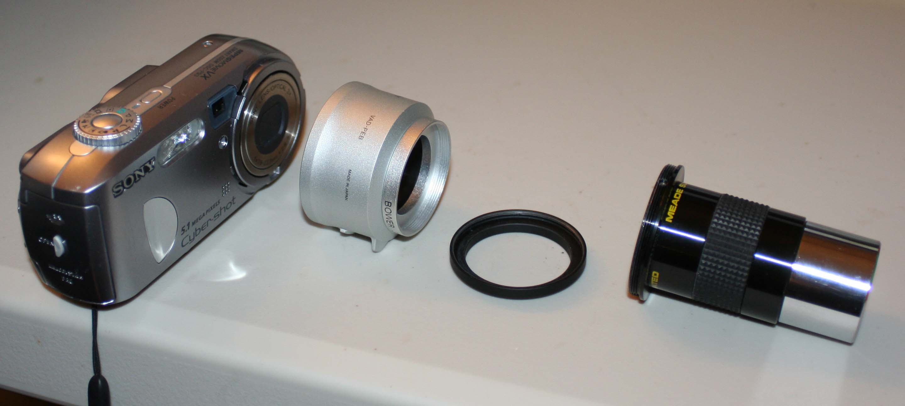 The photo below shows the camera, eyepiece, and adapters disassembled.