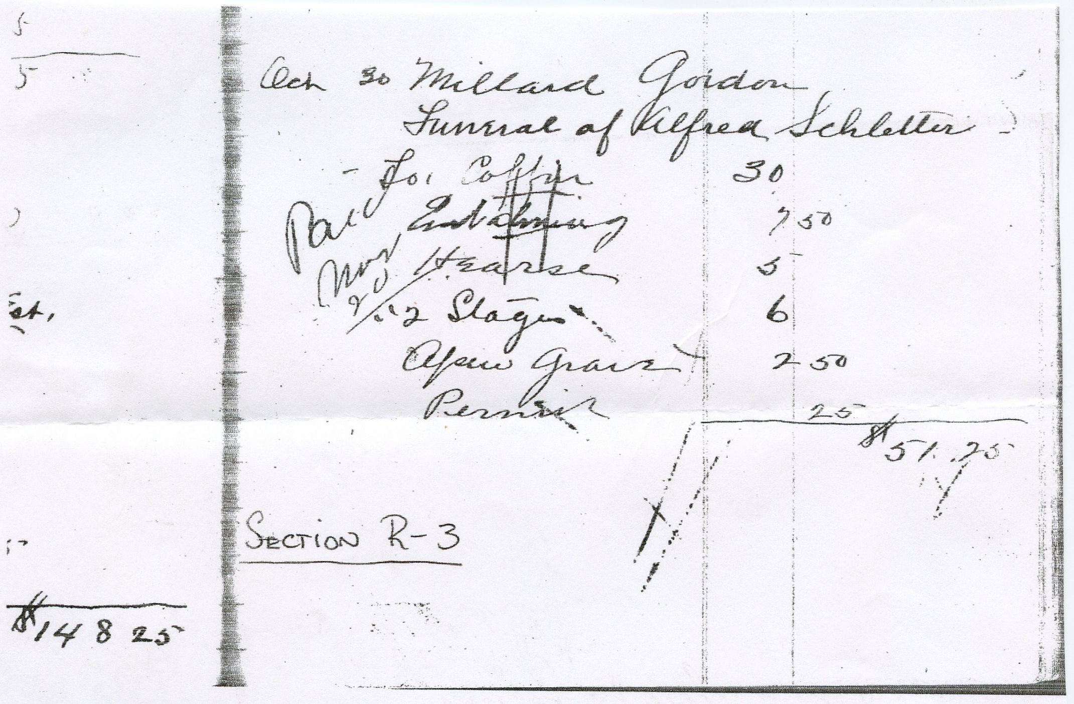 Oct 30 Millard Gordon Paid For coffin $30.00 Section R-3