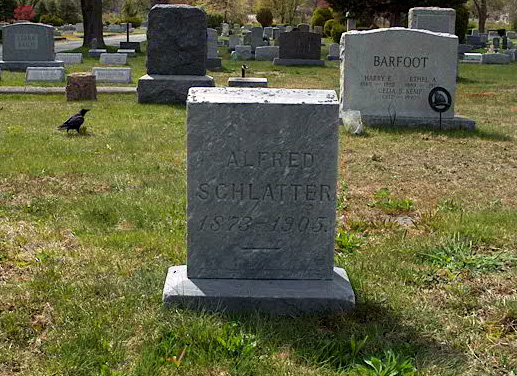 When I talked with the folks at Ruland Funeral Home, they told me to contact the office of the Cedar Grove Cemetery in Patchogue. I did so and have now learned that Alfred Schlatter is buried there, in the Miller family plot -- which is what Mrs. Miller said in her last letter to my grandfather (letters are in this article, above). His headstone is inscribed with his name, Alfred Schlatter, and the dates 1873-1905. In the cemetery records was a copy of the bill for Alfred's funeral: