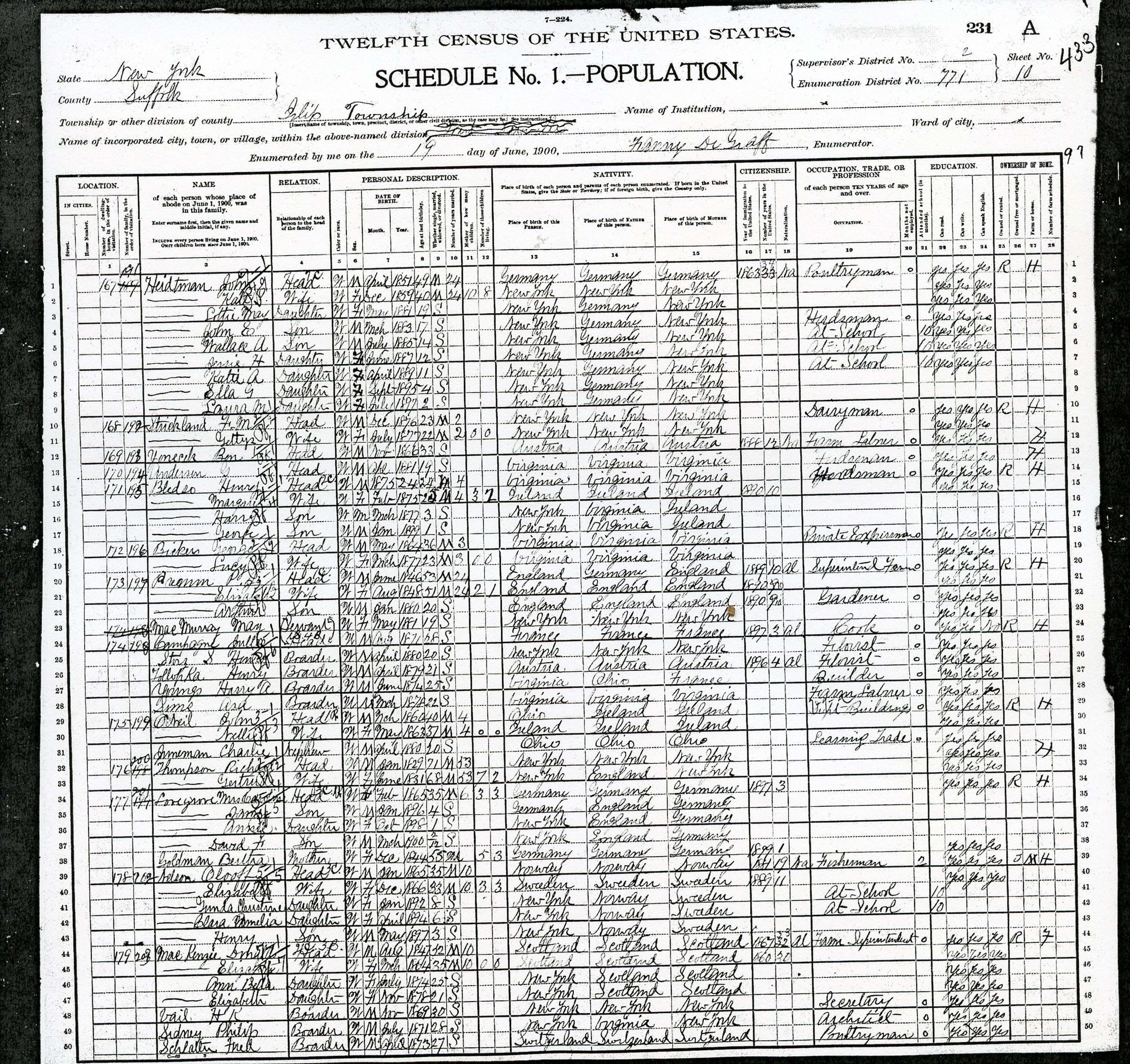 This census is of Islip Township, Suffolk County, Long Island, NY. Fred's letter and his landlady's letters came from "Patchouge, LI" -- a community in Suffolk County, LI, NY.