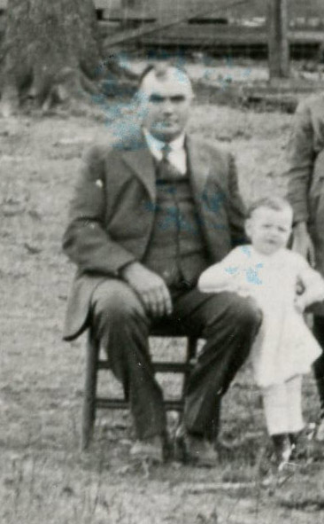 uncle, Homer Golden, leaning on his knee. RIGHT: Mary