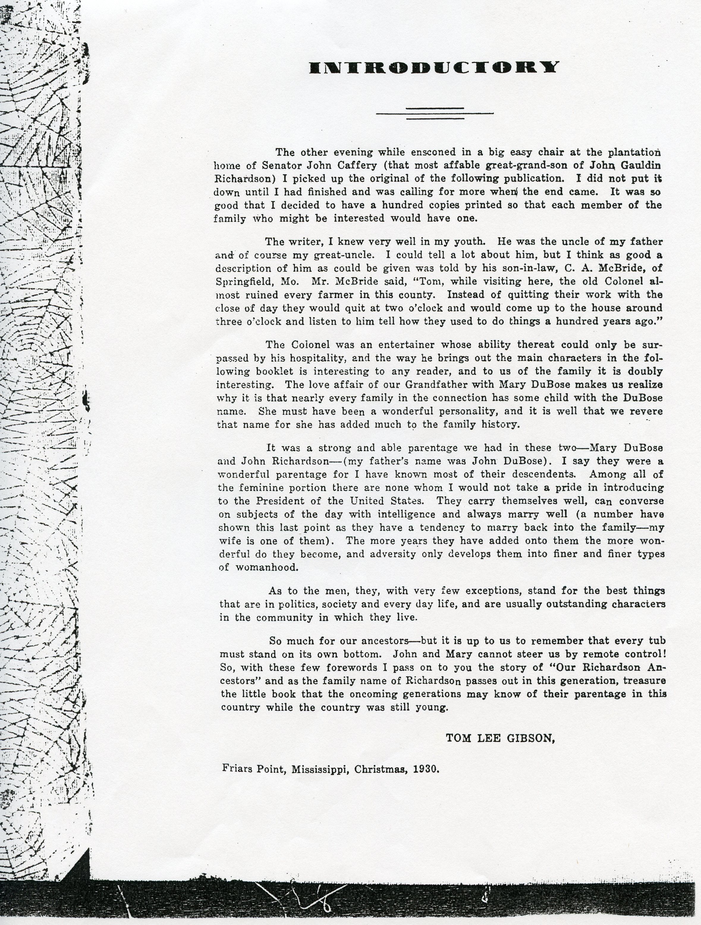 The introductory page is followed by this photo of Francis DuBose