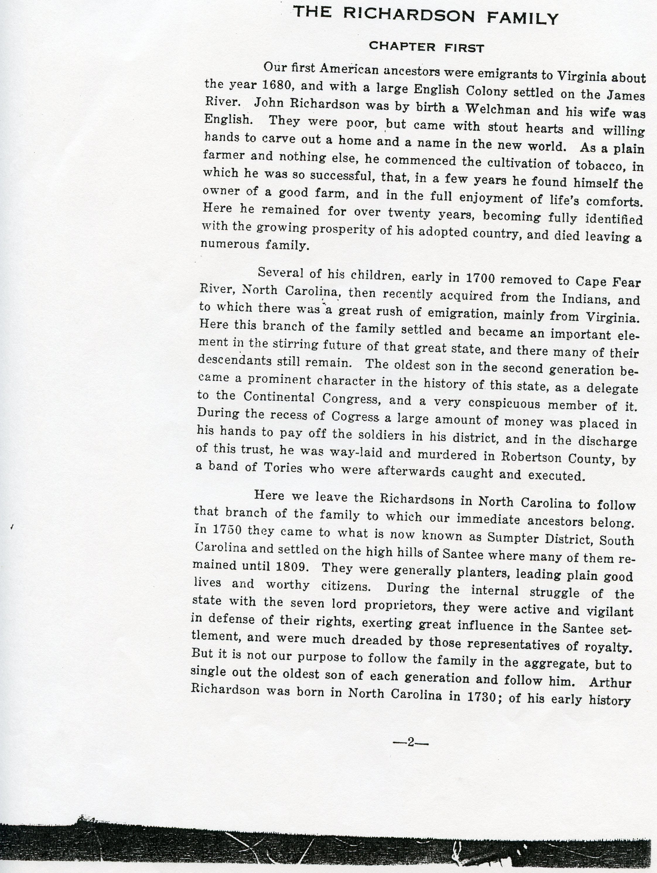 Son of Arthur Richardson; born 1760, near Statesburg, Sumter District,