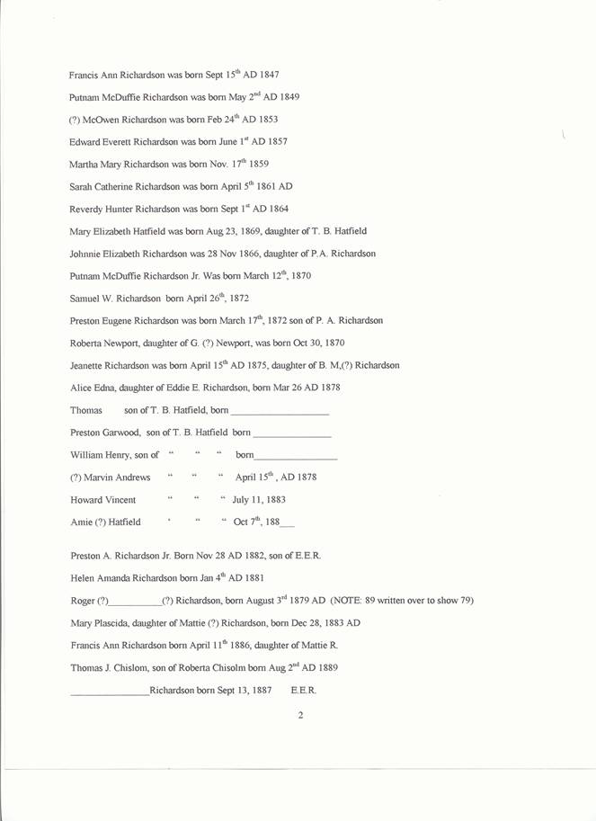 The entry on the seventh line from the top, "Reverdy Hunter Richardson was born Sept 1st AD 1864," is my Great-grandfather.