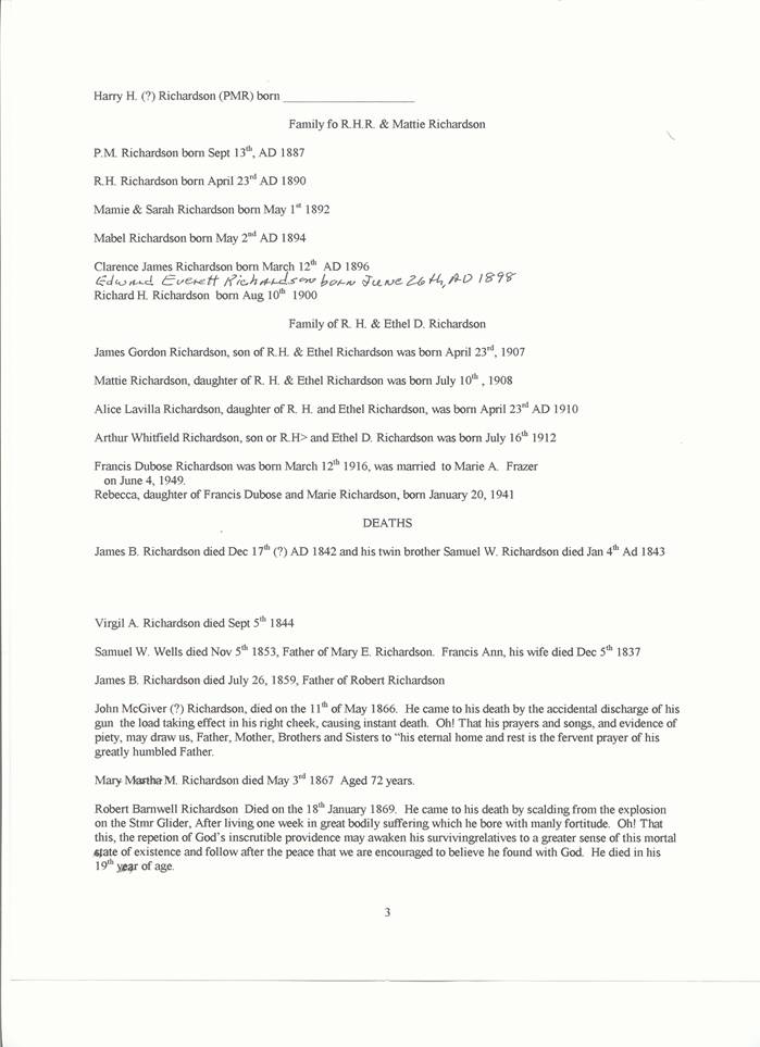 Richardson (1866 - 1901), under the heading "Family fo R.H.R. & Mattie Richardson (sic)."