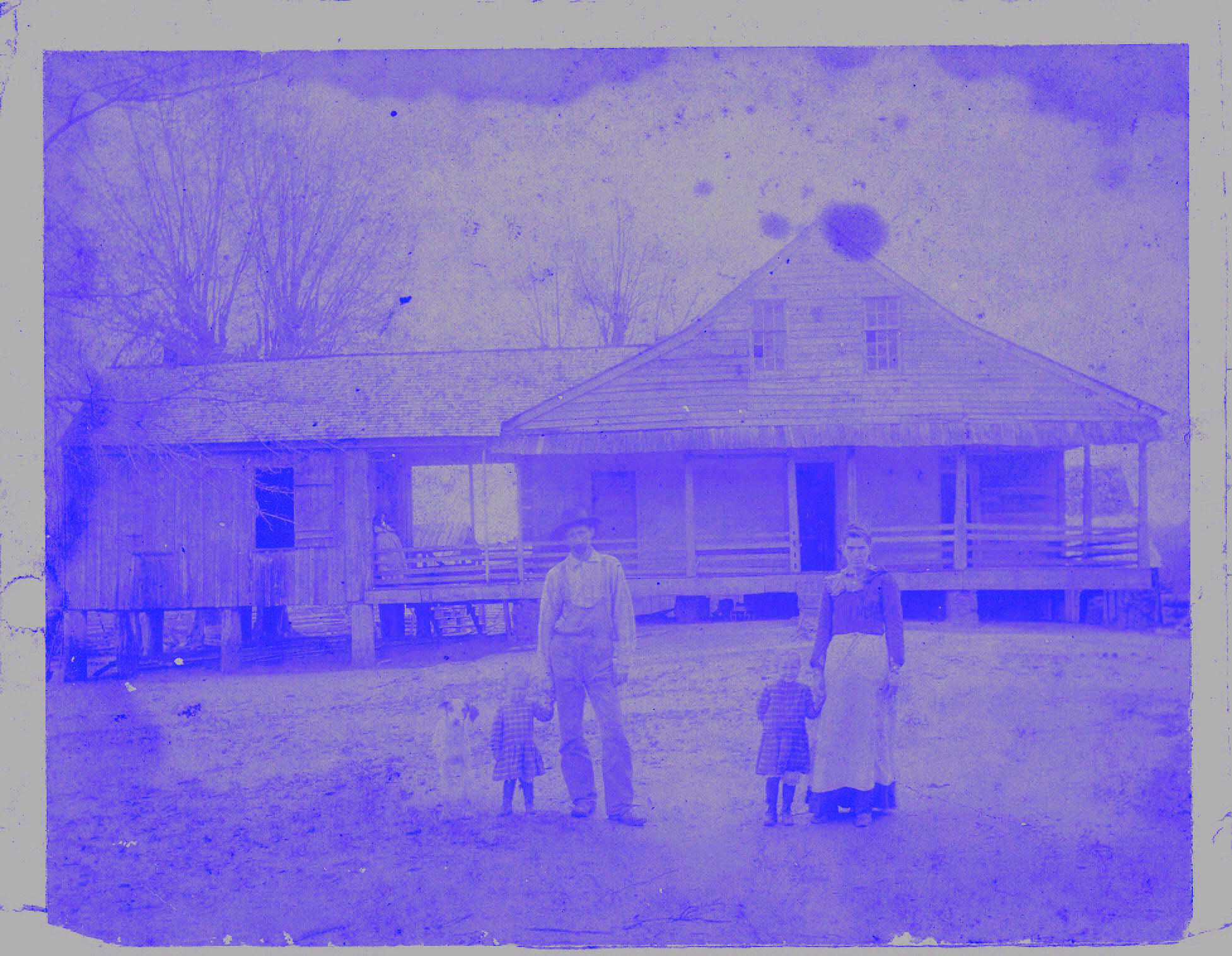 great-grandmother’s father, mother, two little girls, and a hound dog outside