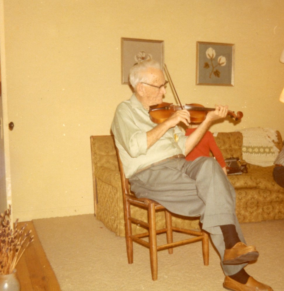 Mr. Henry R. Sullivan, his wife Elizabeth ("Beth") Merritt Sullivan, and their daughter Ellen E. Sullivan were our neighbors when we lived on Natchez Avenue, Knoxville, Tennessee, from 1953 to 1959. Here is a photo of Mr. Sullivan playing his fiddle, 1 January 1974.