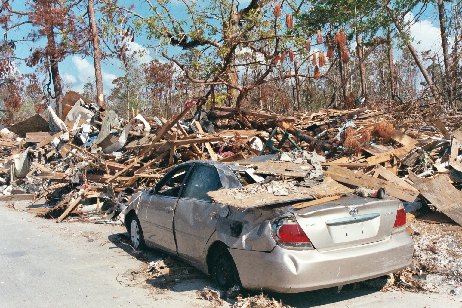 ruined -- they were under water; debris smashed doors, windows, and walls; all