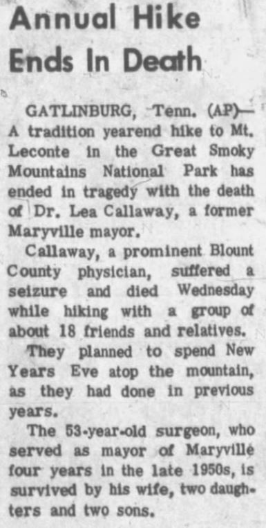 Dr. Callaway's obituary notice from the local Maryville, TN,