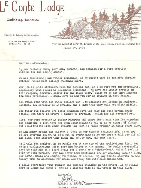 Ken applied for a job at the Lodge. The letter speaks for itself.