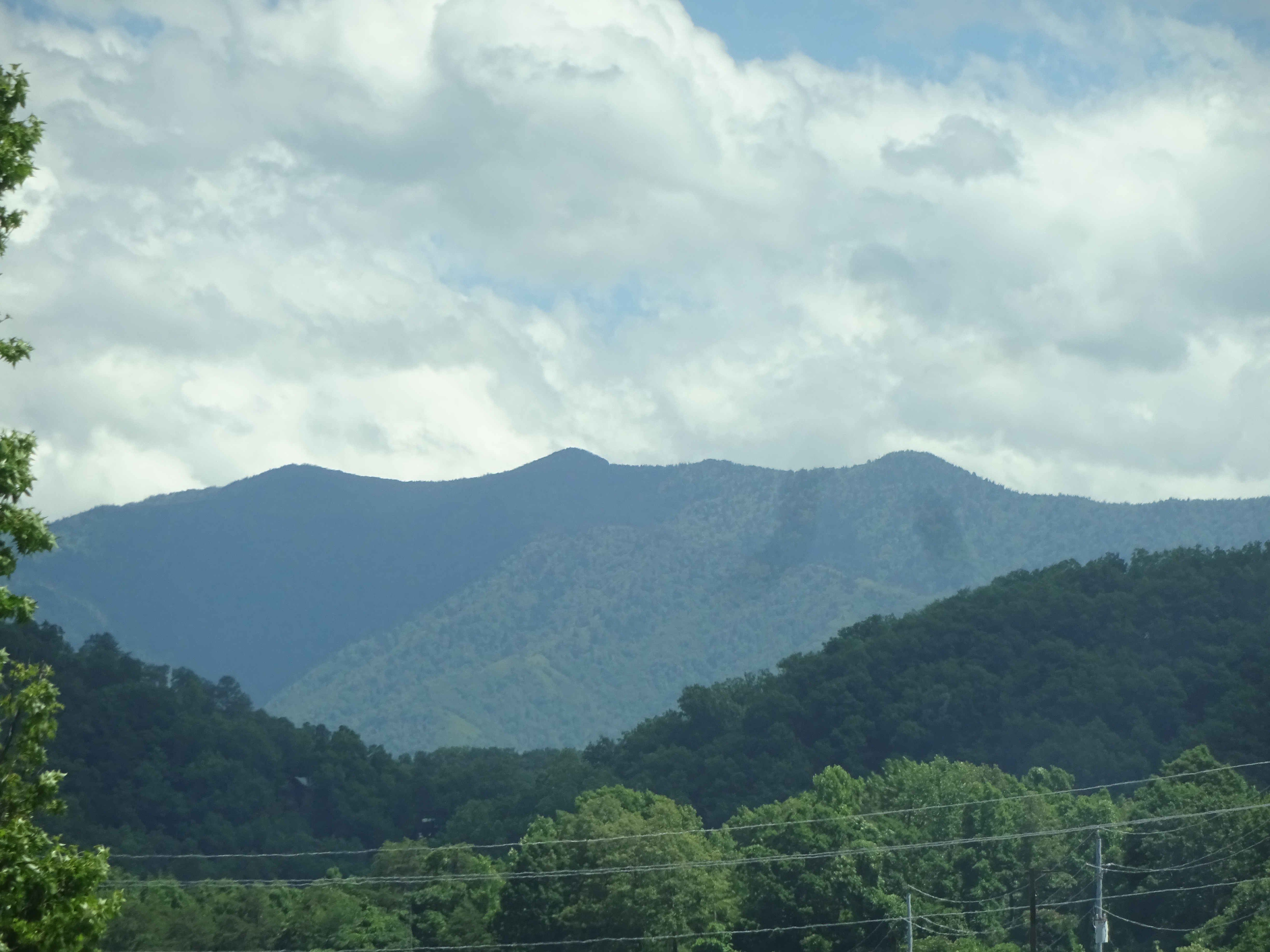 Still, it's LeConte Lodge, like no other place in the world. Oh, and the Lodge has a Facebook page. In June 2025 -- 15 through 20 -- I (Joe) and my wife of 58 years, Rose, went to Gatlinburg to visit her sister and daughter. LeConte was shrouded in clouds until Wednesday, June 18, when -- as we were driving through Pigeon Forge -- we were treated to one of the most spectacular views of LeConte ever.