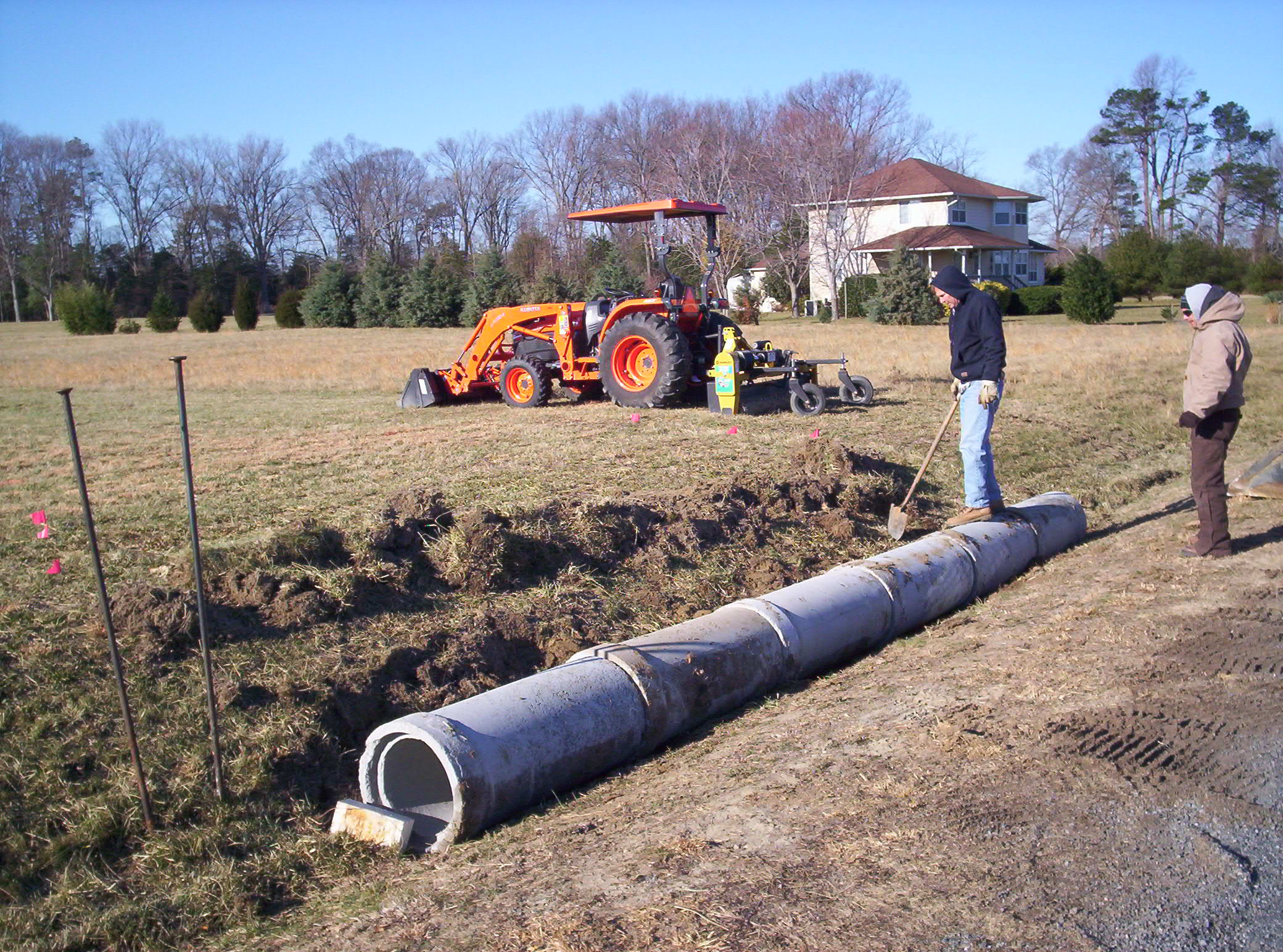 right ) has just dropped the second culvert pipe into the ditch. Chris is