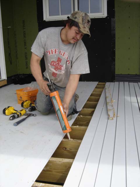 adhesive on the top of the framing lumber (that's the dirty brown horizontal