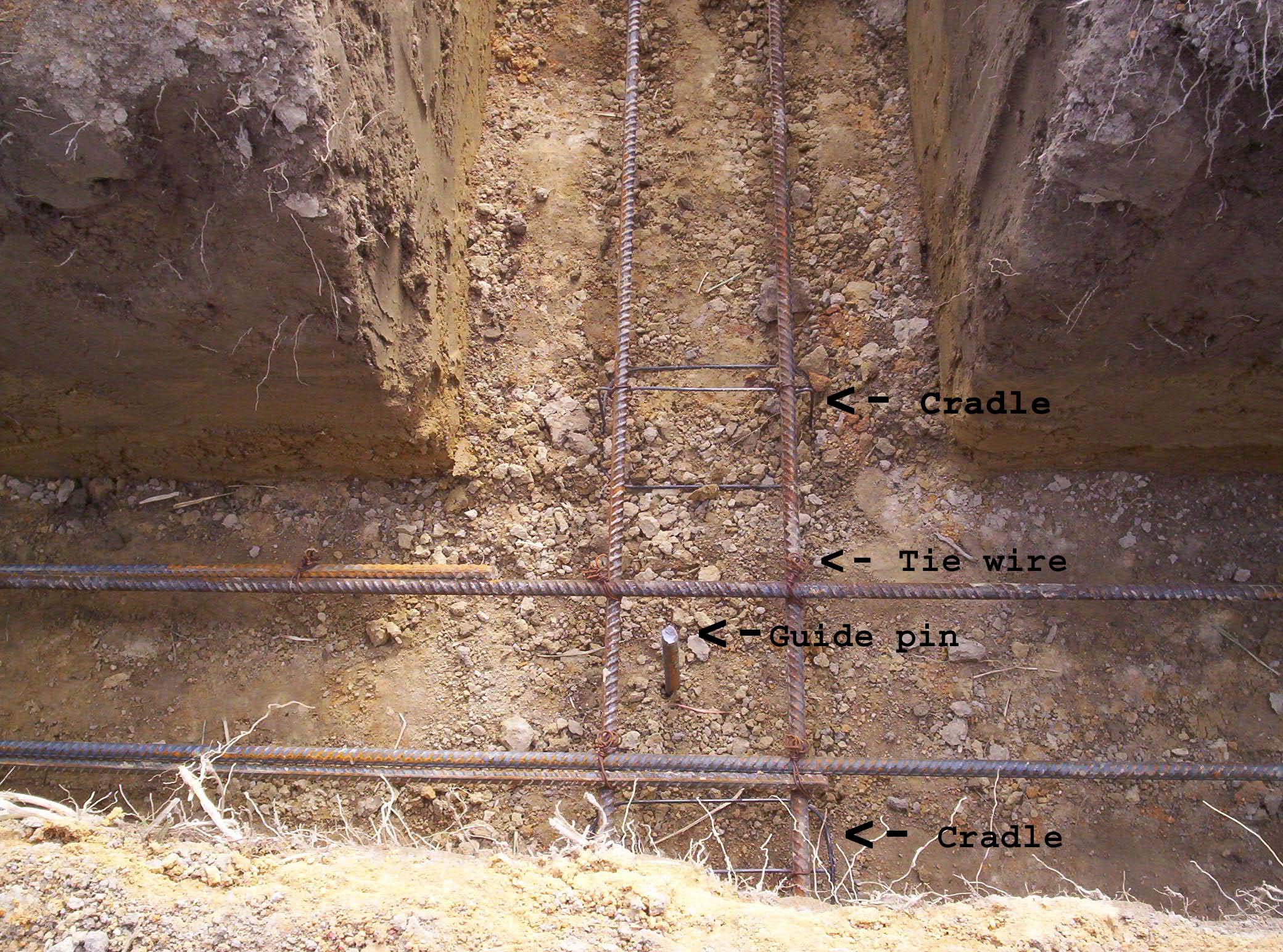 cradle, and, pieces of rebar are tied together where they join. Note also