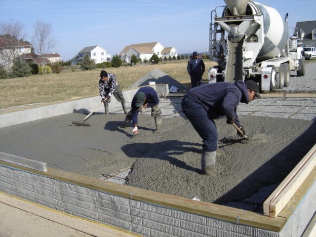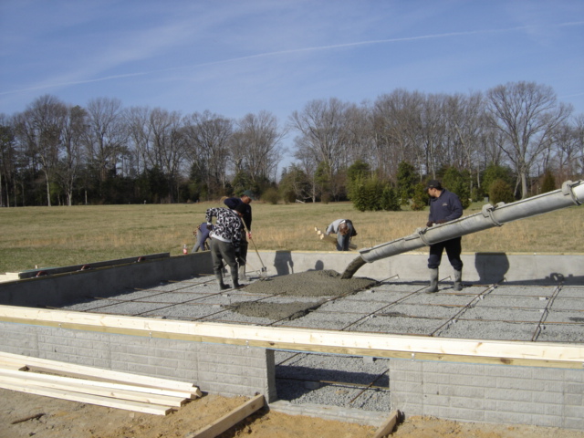 On Monday, 3 March, we poured the concrete floor for the garage and the