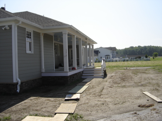 OSB and plywood on the ground are our walkway -- still do not have sidewalks or