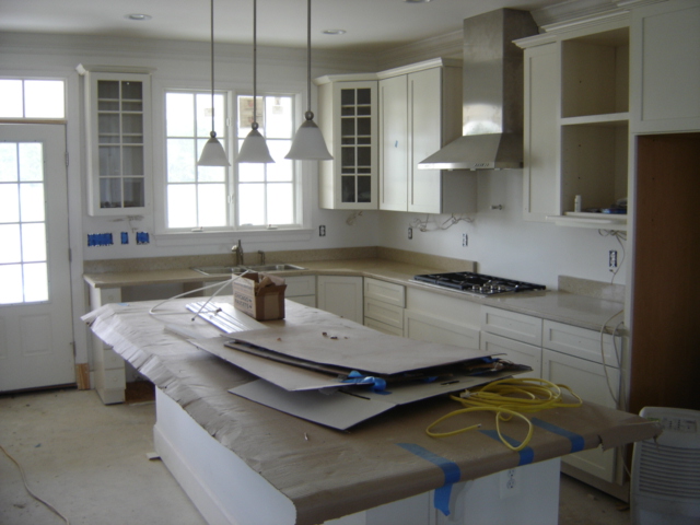 have the countertop covered with cardboard to protect it. The left edge of
