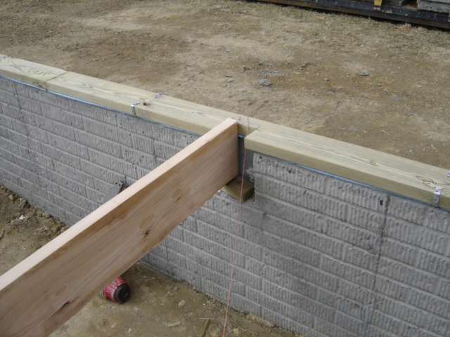the board lying on top of the foundation. Also, note a strip of blue