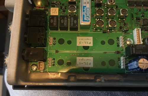 Once inside the radio, look at the left rear where you will see two filter positions — here’s a close-up of the two filter positions.
