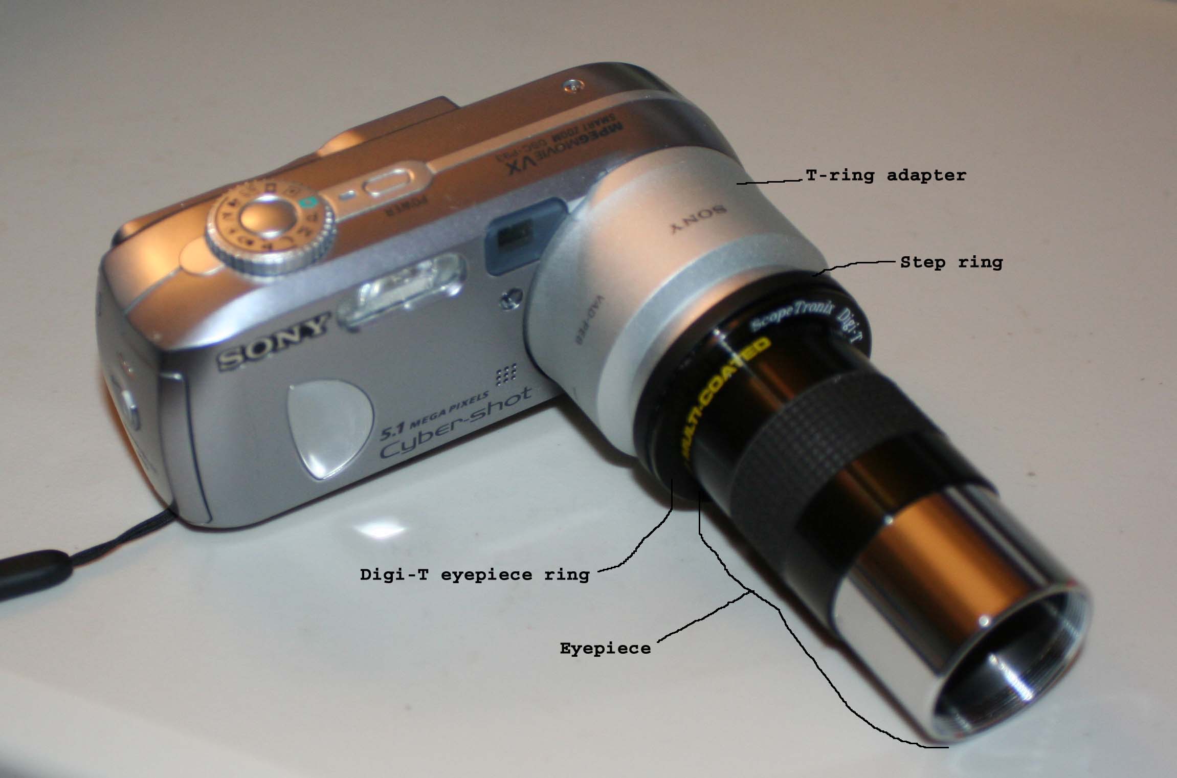 to the eyepiece. I purchased three Digi-T eyepiece rings and put