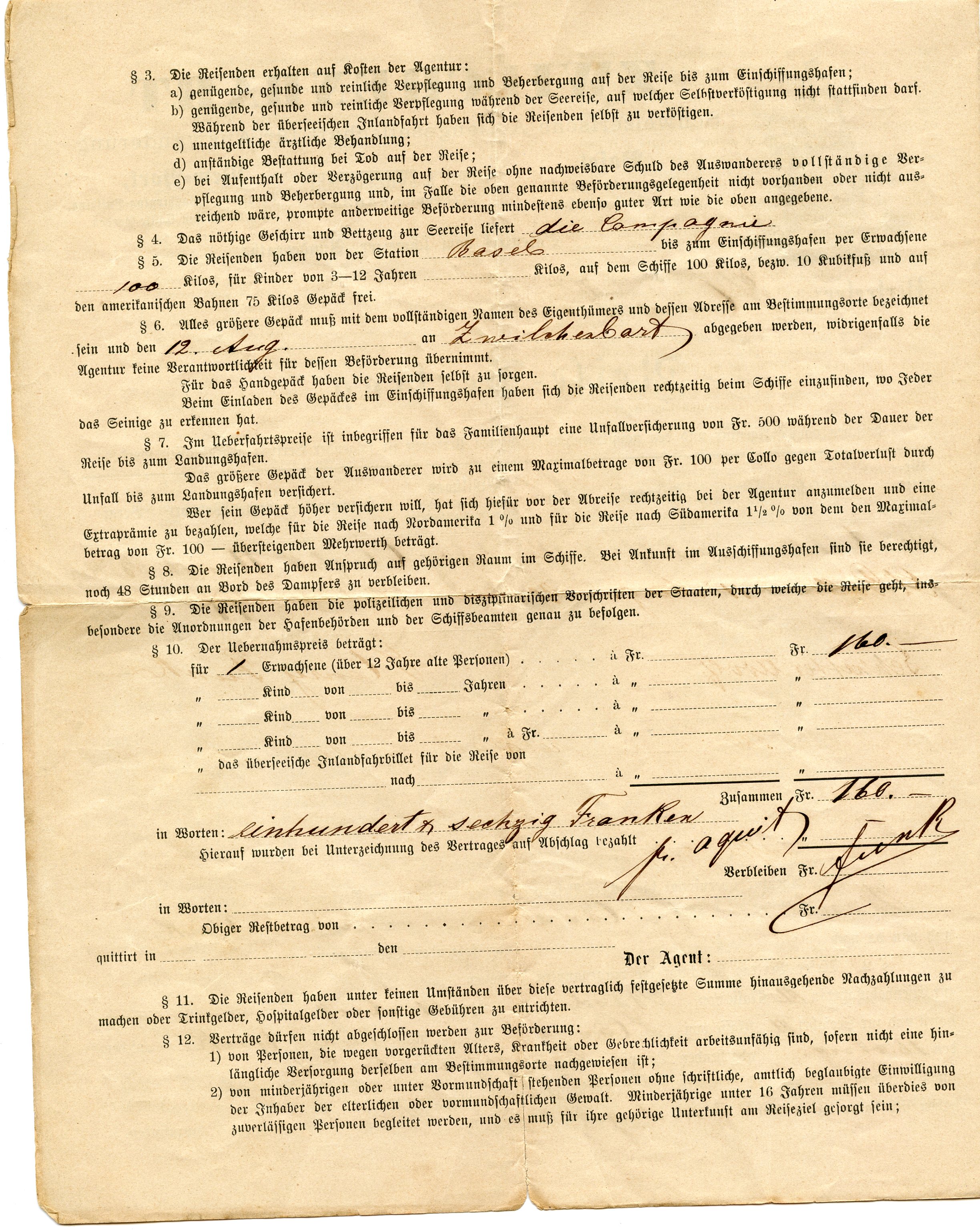 Entries on this page indicate he paid 160 Francs to the travel agency. I can't determine if this was the total cost of his travel, or, if this was a partial payment.