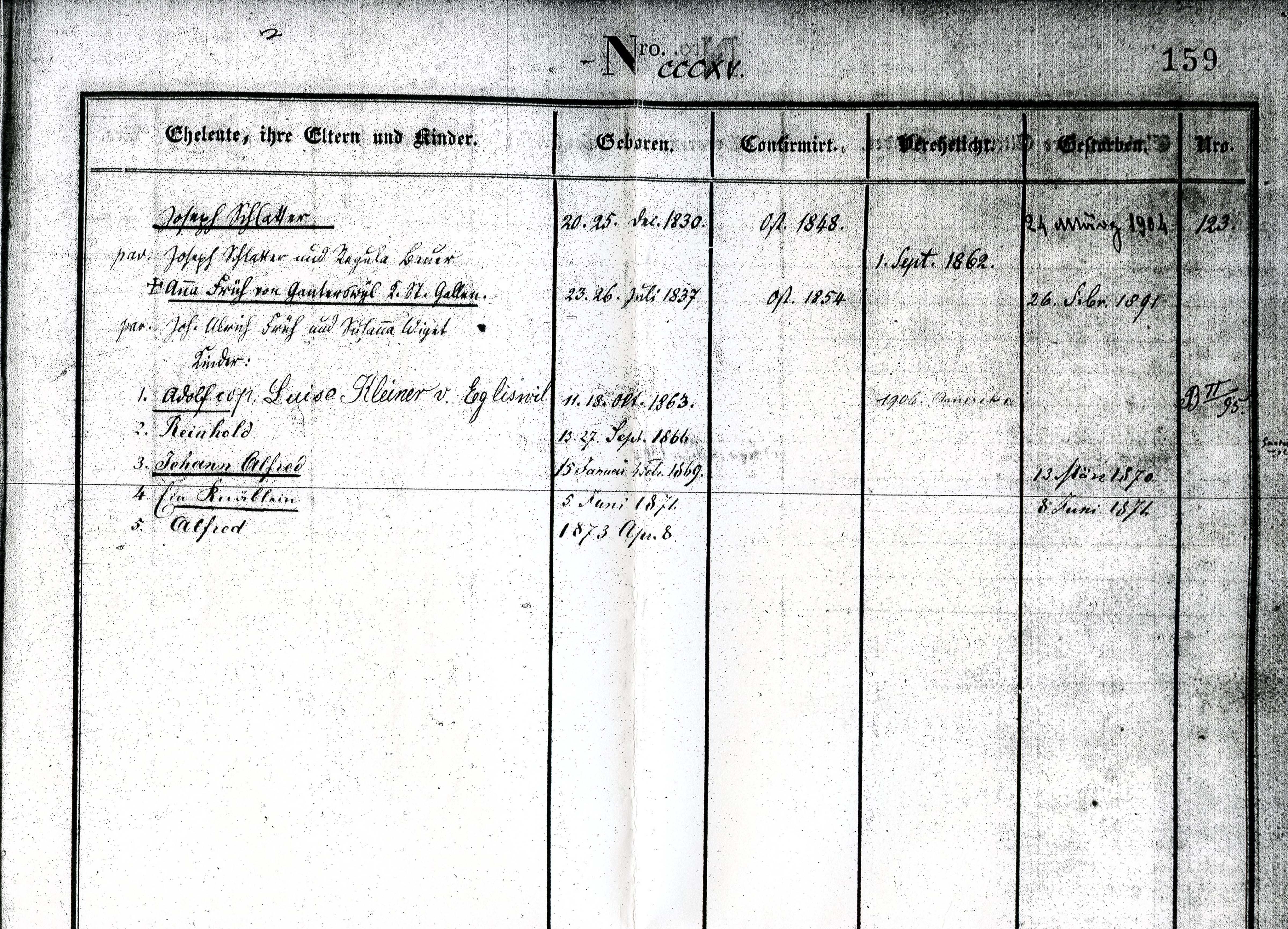 Josef Schlatter is my great-great-grandfather. His parents, Jakob Schlatter and (illegible), are my great-great-great-grandparents.