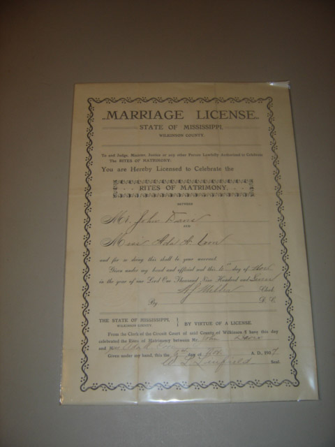 Among this "stuff" I found (1) the original marriage license for Aunt Ada and