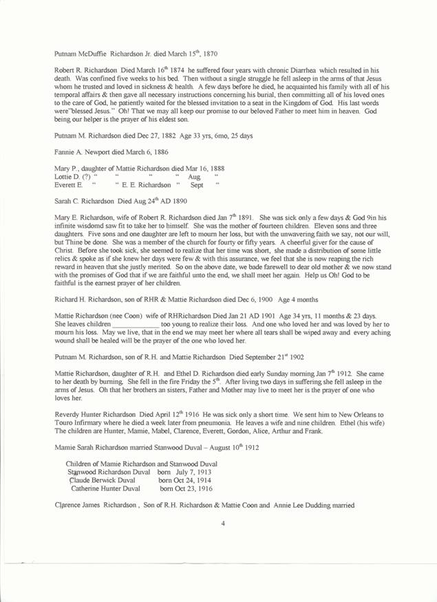 - My Great-grandmother Mattie Coon Richardson died in January 1901.