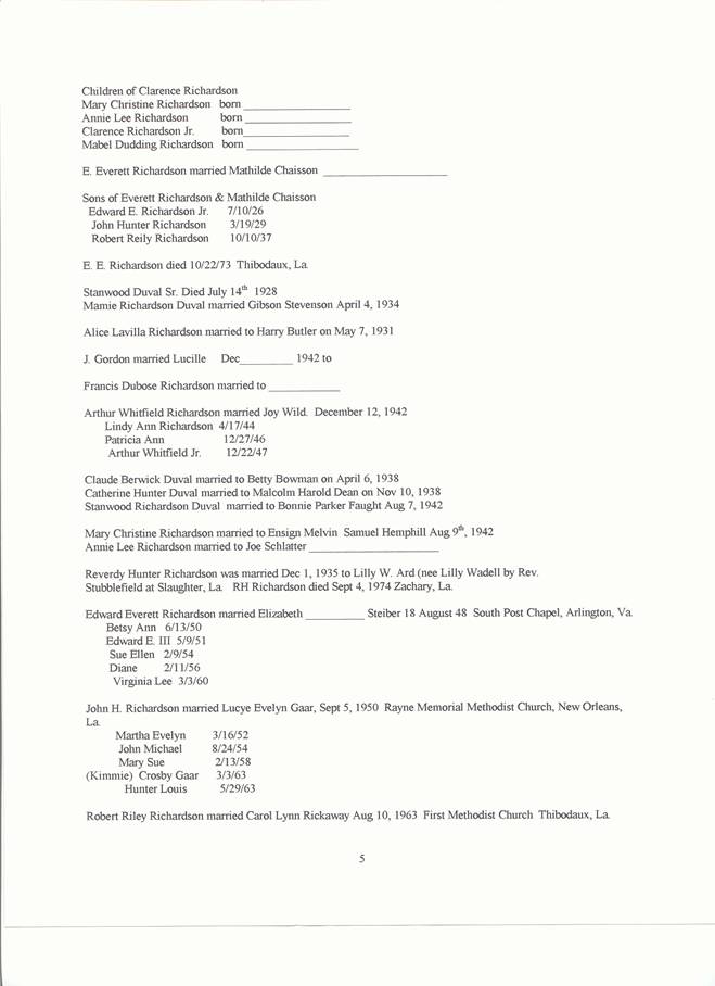 The first few entries on this page are my grandfather, Clarence Richardson (1896 - 1972), and his children. My mother is one of the "children of Clarence Richardson" -- line 2 -- Annie Lee Richardson (1924 - 2007).