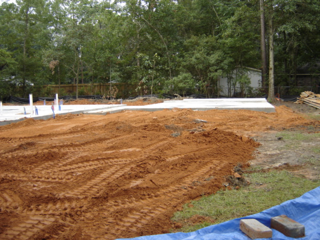 So far, dirt has been packed against the slab and