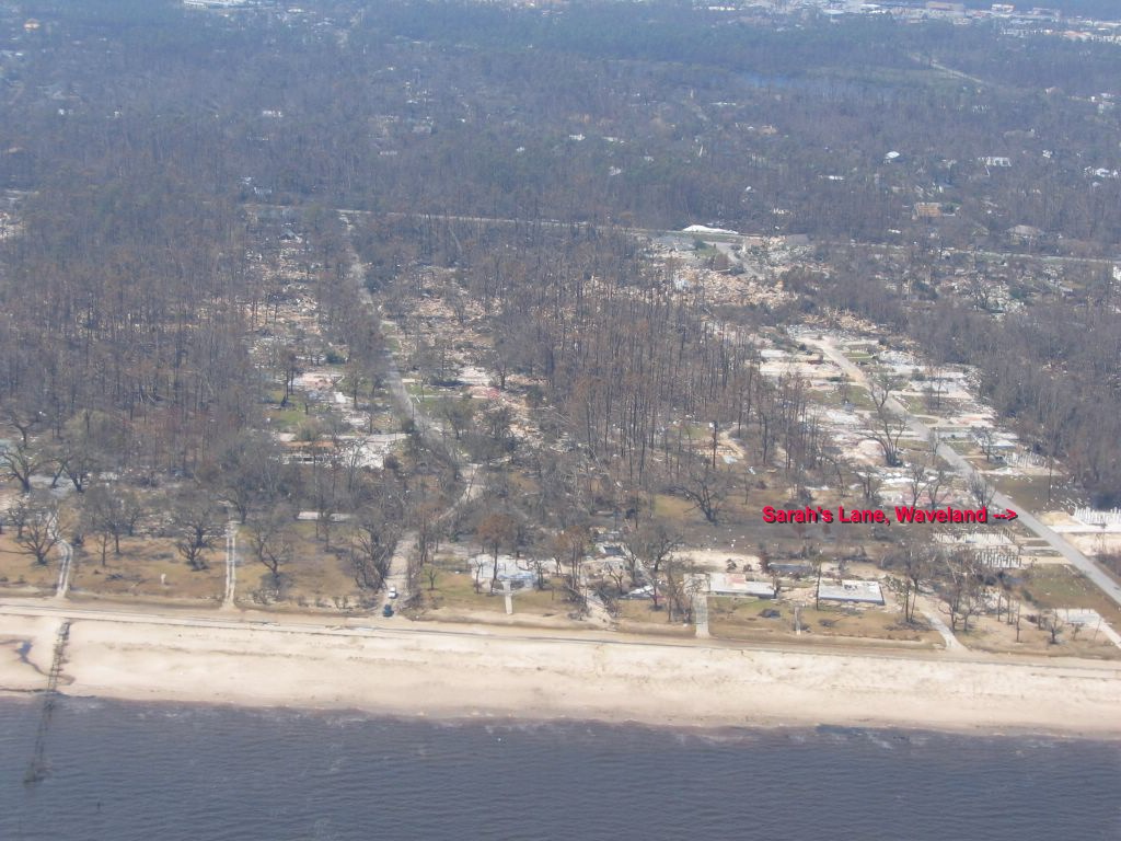 Waveland, MS; Sarah's Lane pointed out by the red arrow.