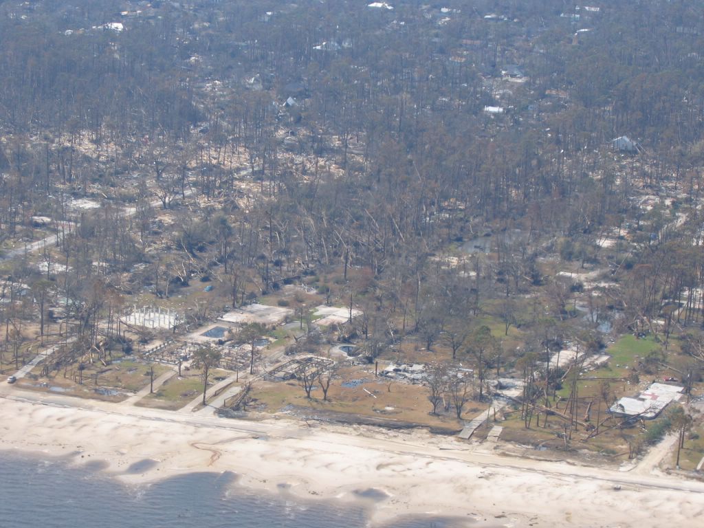 This site has aerial photos of Katrina's destruction from Dauphin Island, AL,
