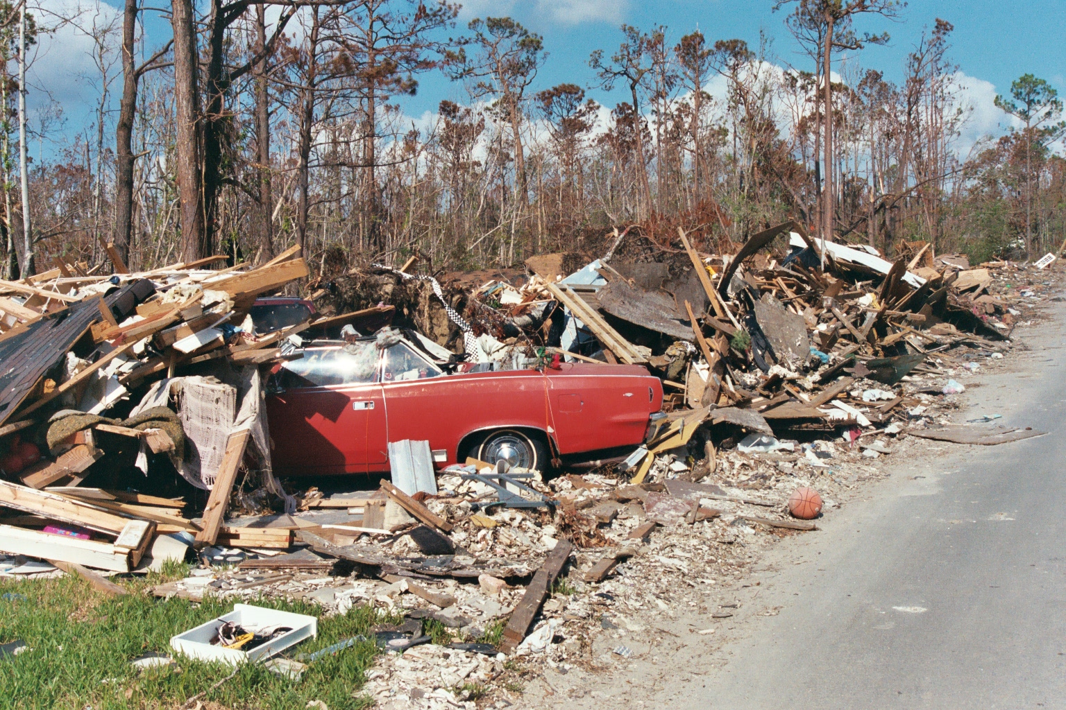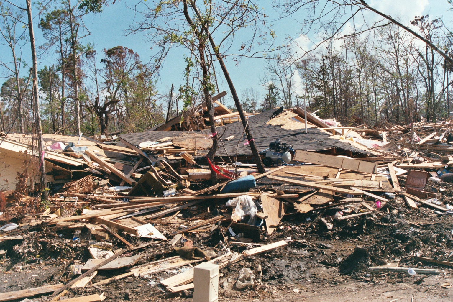 ruined -- they were under water; debris smashed doors, windows, and walls; all