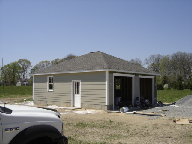 Here's the garage with the siding crew seated in front eating