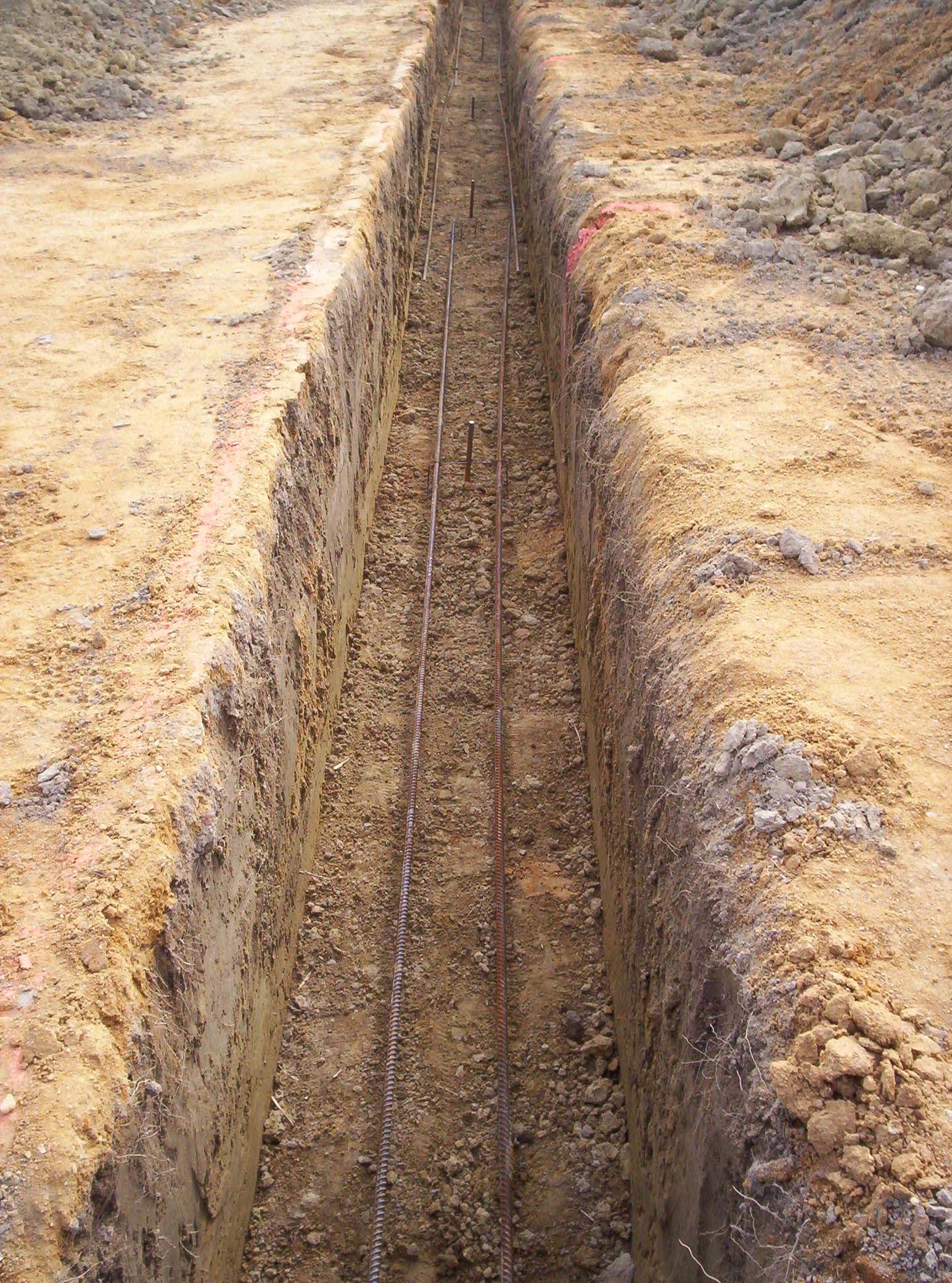 in the trench. When concrete is poured into the trench, the rebar provides