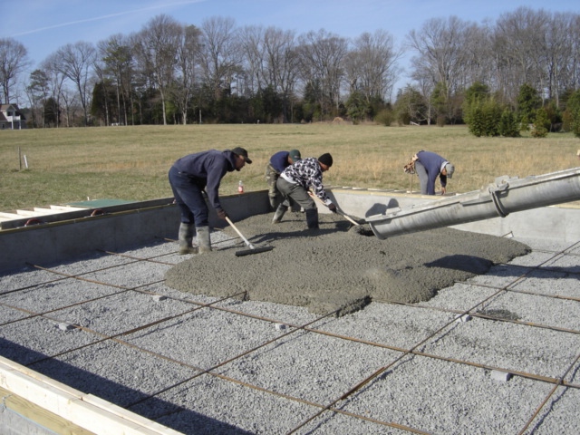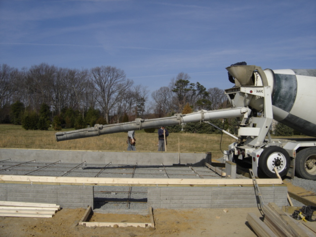 On Monday, 3 March, we poured the concrete floor for the garage and the