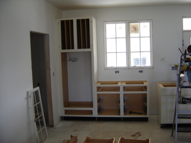 Here are photos of the cabinets being installed.