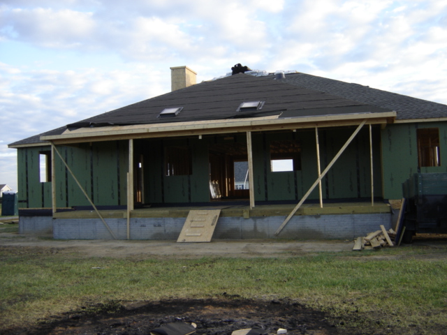 over the back porch -- this roof has two skylights and only has roofing felt